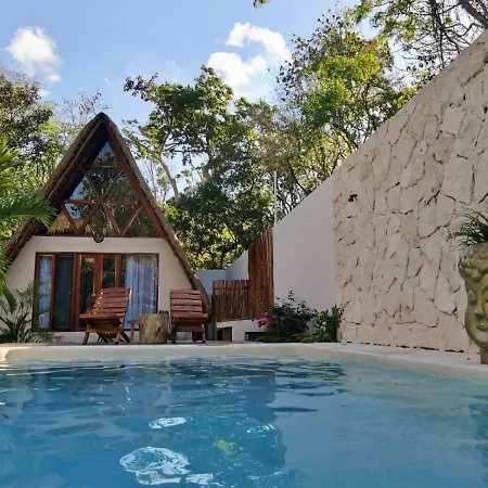 Lodge Tzunum Jade, som ligger ungefär 10 minuter med bil från Templo "La nueva Jerusalem", erbjuder bubbelpool för gästernas avkoppling.